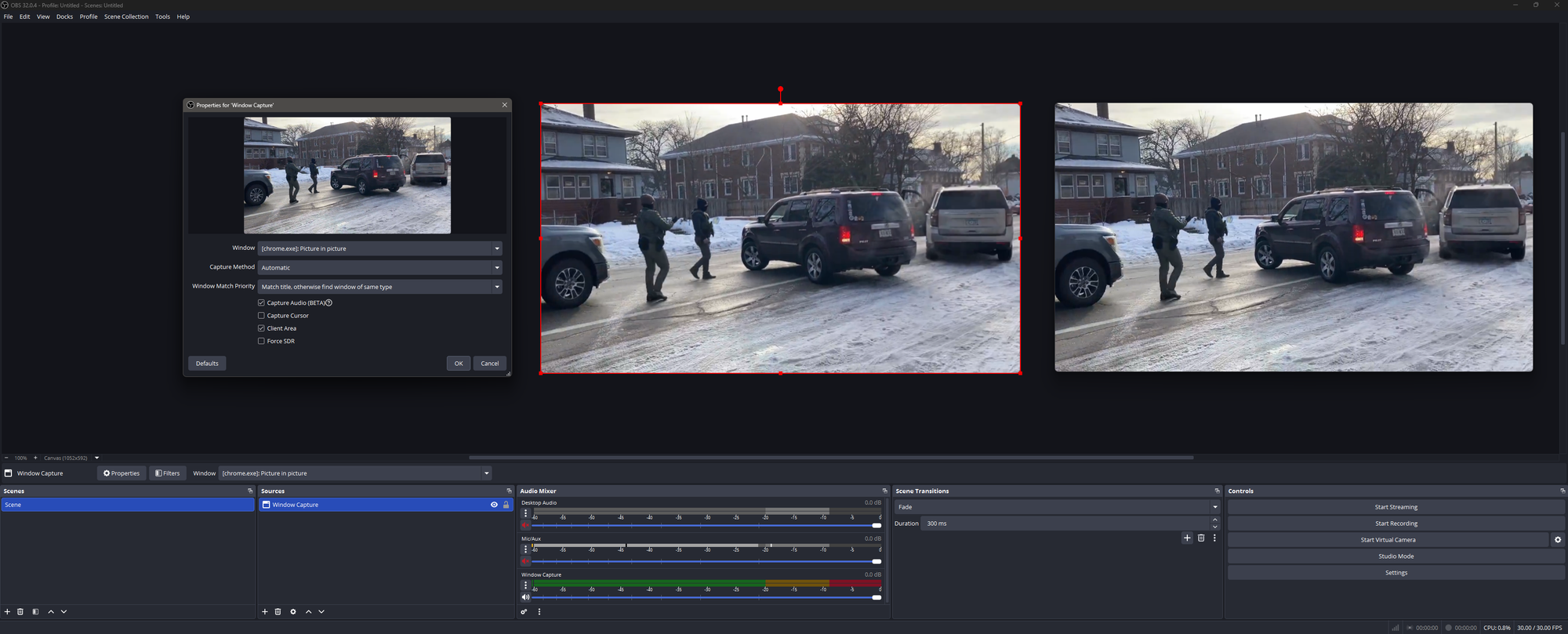 I struggled to make sense of the moment, but I also grew increasingly frustrated by the repetitive display of the videos without the context necessary to allow an average viewer to draw a reasonable conclusion. So, I sought out publicly available footage to perform my own analysis of the events. I narrowed my effort down to a video shared on social media by local journalist Max Nesterak, which offered the clearest view of the events at the time. This video was recorded using OBS Studio to capture the picture-in-picture audio and video in a manner suitable for further analysis.